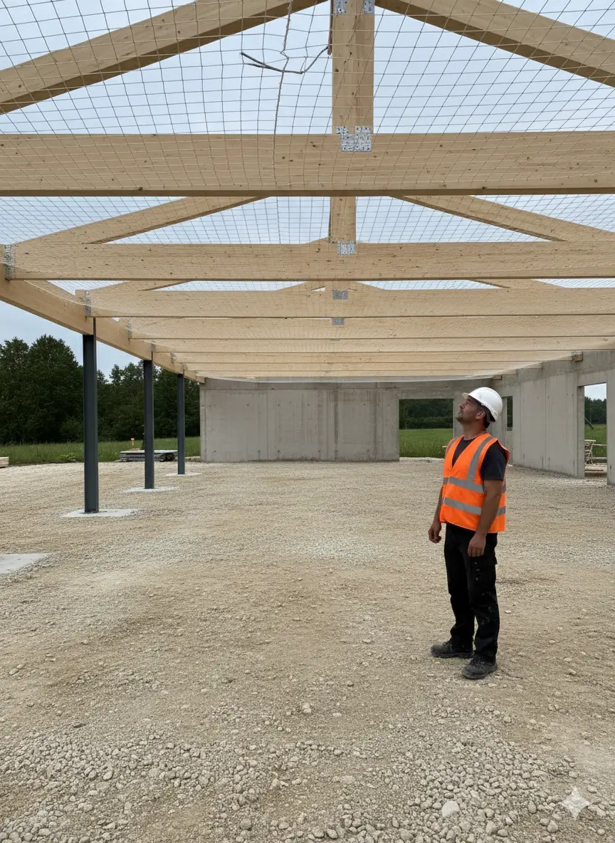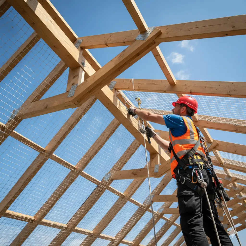 Pose professionnelle de filets de sécurité conformes aux normes pour tous types de chantiers et bâtiments.